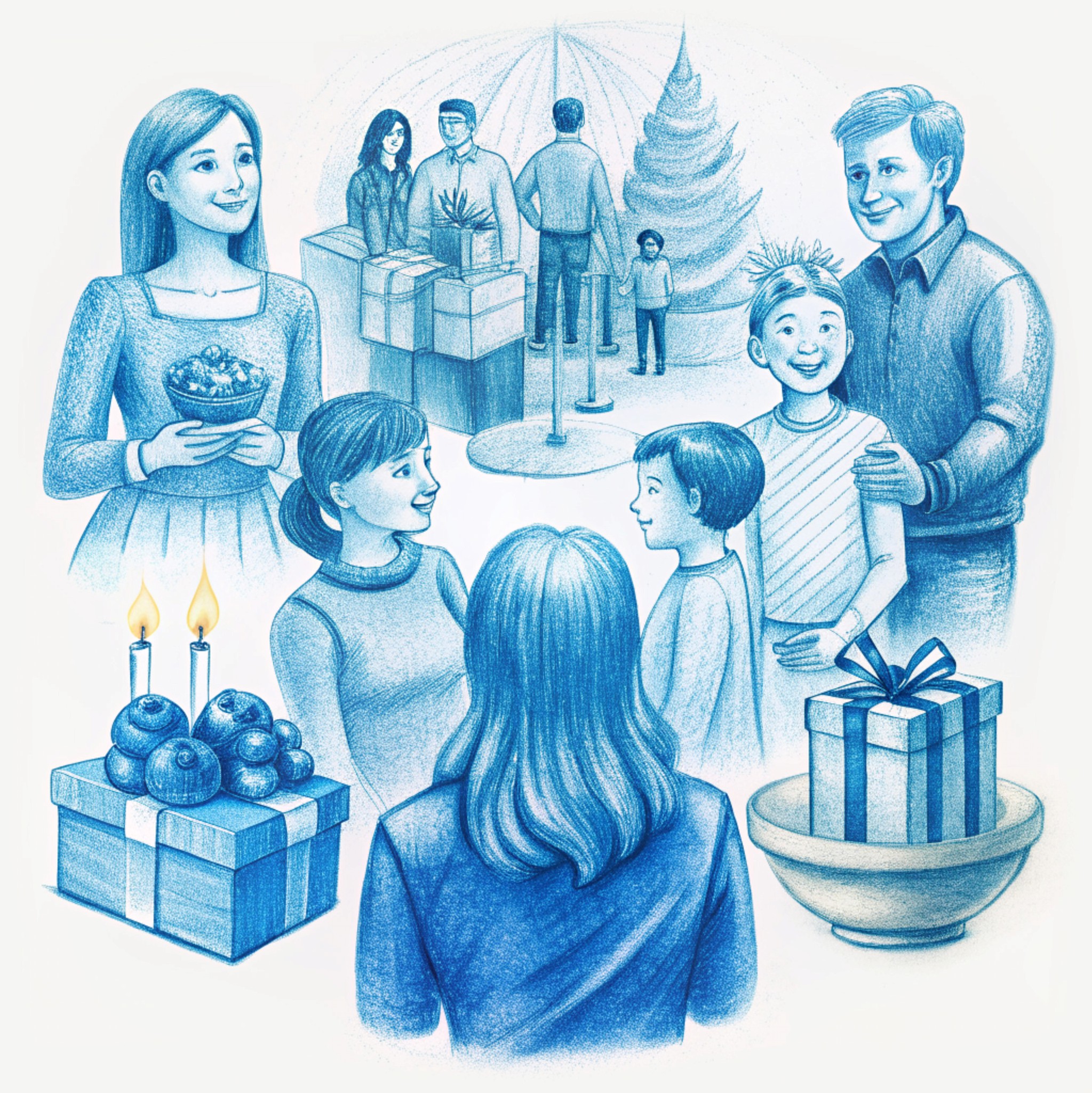 I began pondering the happiest moments in people's daily lives, such as family gatherings, shopping trips, parties, birthdays, holidays, Christmas, and more.
