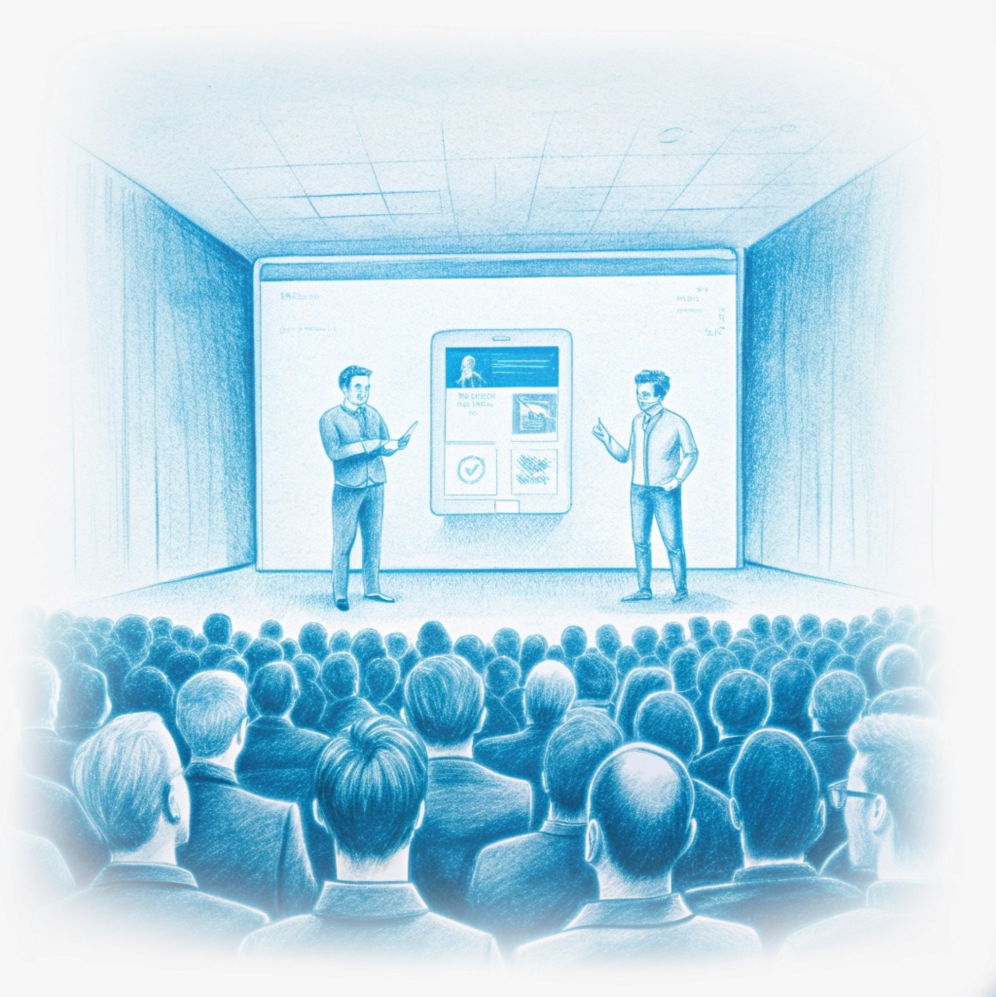Connecting my phone to the projector, all eyes are now fixated on my screen. A simple tap on an app icon feels like an eternity as a whirlwind of thoughts race through my mind: "Is my phone charged? Is it on airplane mode? Did I test the app in airplane mode? What did I miss? There's always something that is missed. Why can't i think of anything? Why all these questions now when it's too late? Stay calm, don't show nerves, just roll with it. You've got this. You're presenting a product you believe in, a product you're proud of!" Finally, the app springs to life, marking the beginning of the grand reveal.